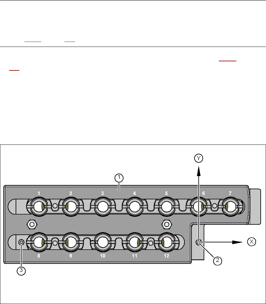 Fig. 6.1 - 8 Cargador de pipetas - numeración de posición, marcas para la determinación de la posición y la posición