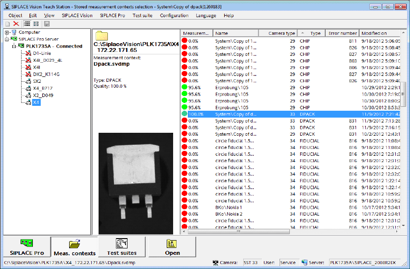 The new "SIPLACE Pro Server" entry is displayed in the tree view of the "Measurement contexts"