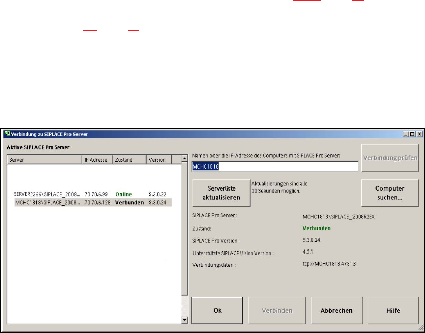 Abb. 9.2 - 1 Dialog: SIPLACE Pro Verbindungsdaten