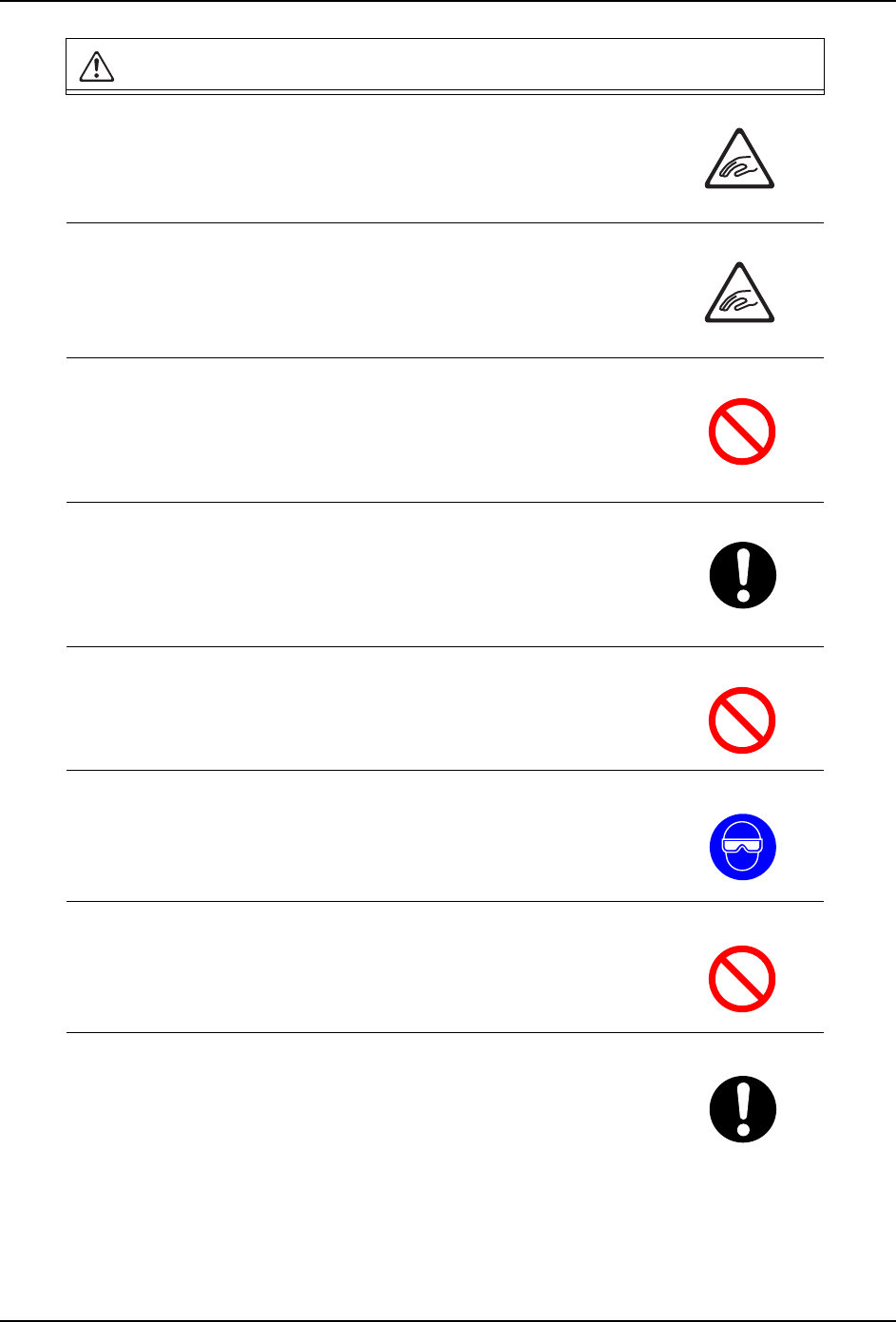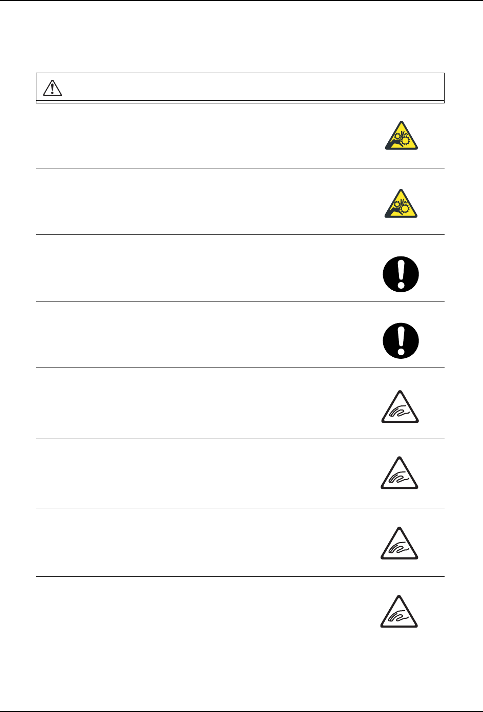 QD136-00 1. 安全指南 NXT/AIM 供料器安装治具 使用说明书 5 1.3 NXT 的注意事项 1.3.1 机器本体 在料站平台上搭载的供料器数量 较少的情况下,请不要将手伸入供 料 器之间的空隙中。 · 手指有可能与正在动作中的工作 头接触,被卷入机器而受伤。 在模组处于半拉出状态下进行搬 运轨道宽度变更的操作时,请不要 将 手伸入搬运轨道部位。 · 有可能被搬运轨道的可动轨道夹 住手指而受伤。 在进行 MCU 连接作业…