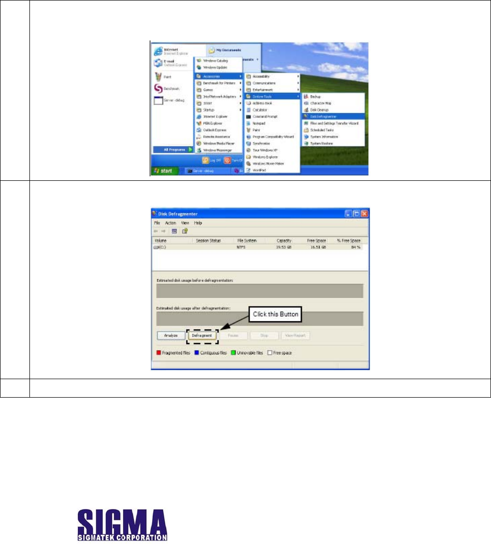Defragmenting the Computer Hard Drive (整理電腦內硬碟資料 ) 保養種類介紹 : 月保養或印刷80000片 估計完成時間 : 5分鐘 使用工具,材料 : 動作步驟 1. 從Windows XP 開始功能鍵,選擇所有程式>附屬應用程式>系統工具>磁碟重組,進 入磁碟重組視窗畫面。 2. 按開始磁碟重組動作。 3. 執行完畢後關閉視窗畫面 希 瑪 科 技 股 份 有 限 公 司 台 灣 TEL:+886…