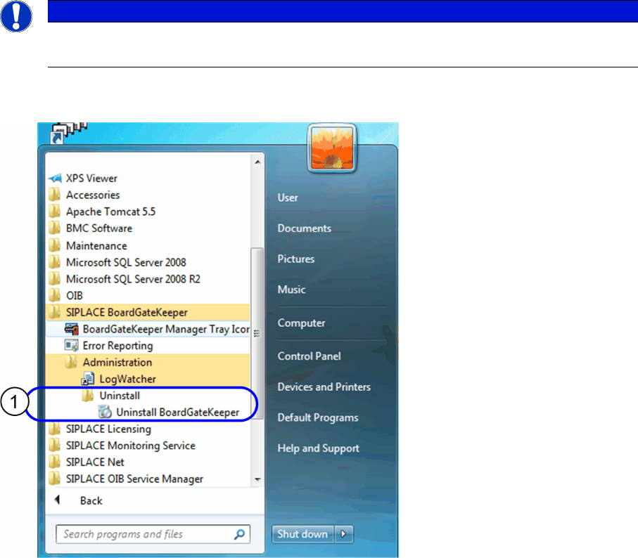 ► In the Start Menu select the SIPLACE BoardGateKeeper program group -> Uninstall BoardGate-