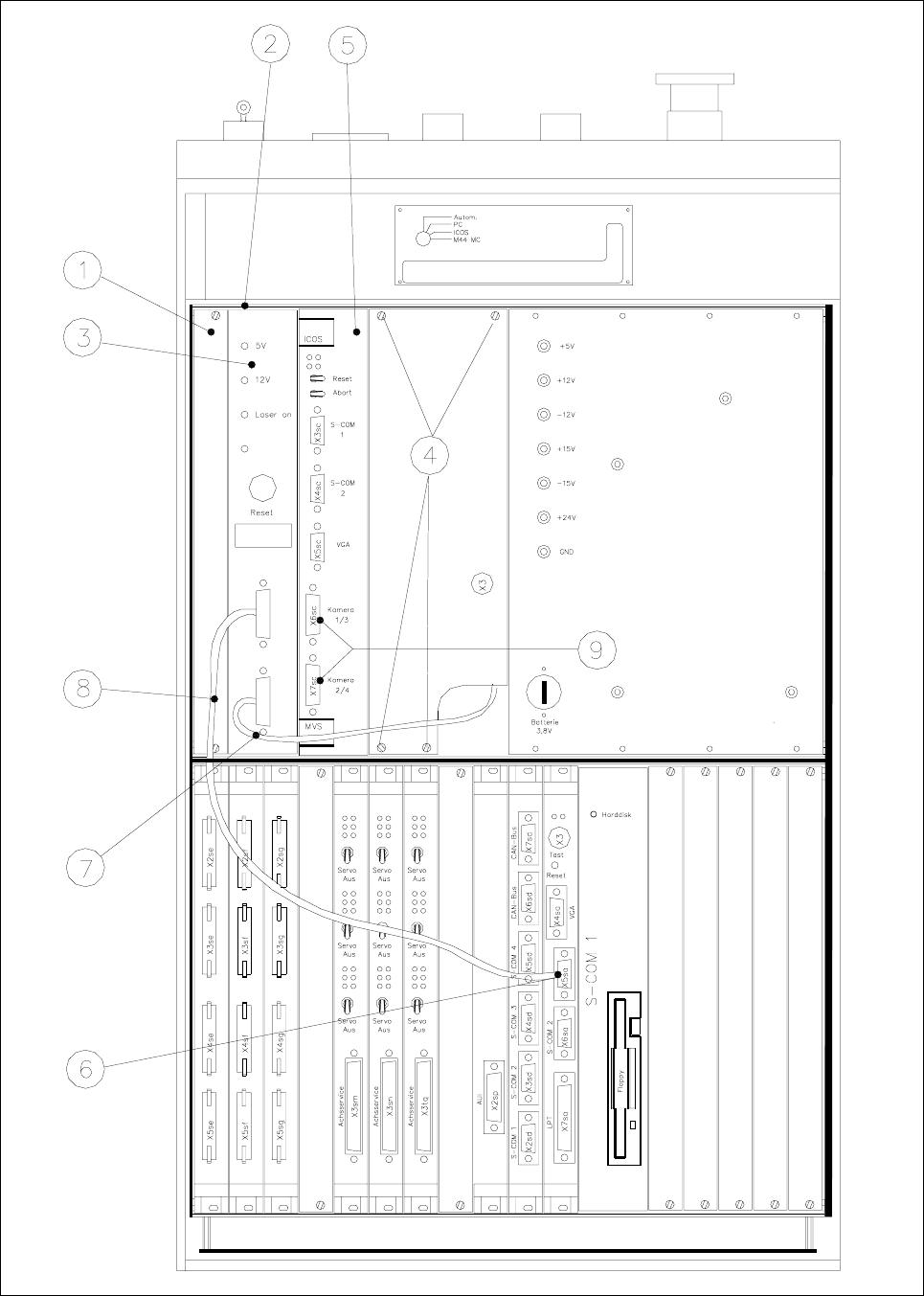 5) ICOS (bei älteren Steuereinschüben 6) Maschinencontroller, COM 1