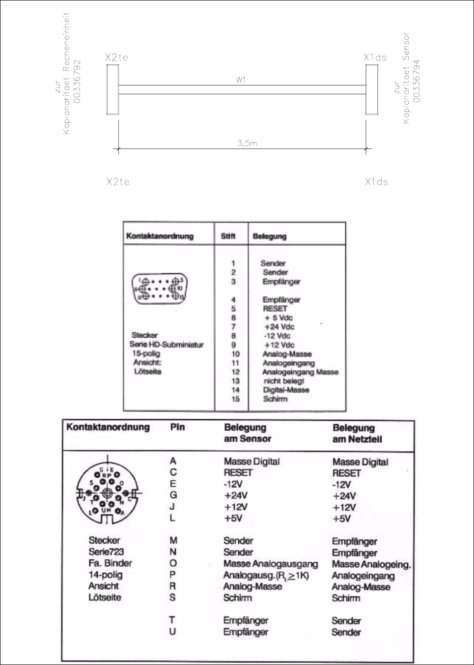 Abb. 1.5.2 Sensorkabel Koplanarität; Art.-Nr. 00336793-01 (Sensor -> Vorderseite Steuereinschub)