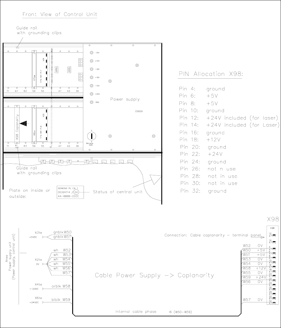 Fig. 1.5.5 Control Unit: Connector X98 and Cable "Coplanarity" from X98 -> Power Supply Unit (Item No. 00342894-01 )