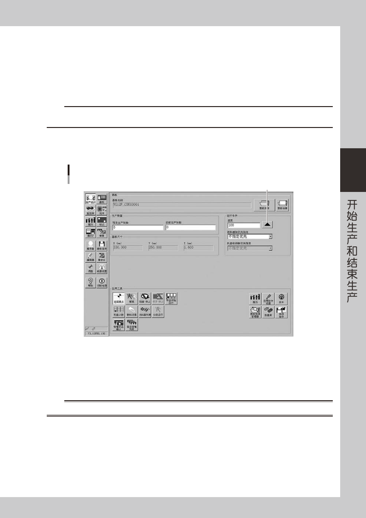 运行条件中的「速度」栏显示当前设置的运行速度。如要变更运行速度按 [ ▲ ] 按钮。