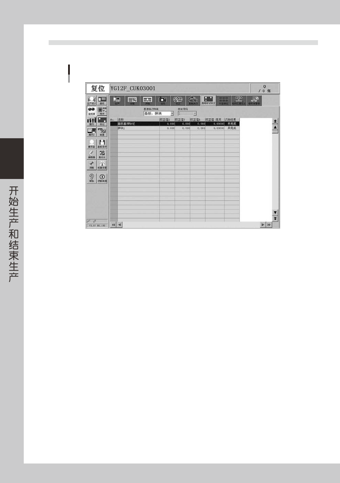 显示「基板、拼块」「局部」「点」等基准标记的识别结果。