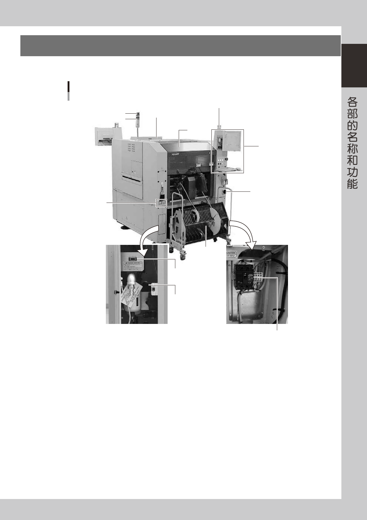 第1章 各部的名称和功能 目录 1. 主机 1- 1 2. 操作、输入部 1- 3 2.1 键盘与鼠标 1- 3 2.2 操作面板按钮 1- 4 3. 贴装头部 1- 5 3.1 吸附、贴装元件的贴装头和识别装置 1- 6 3.1.1 5 连贴装头 1- 6 3.1.2 多视觉相机 1- 6 3.2 吸嘴种类 1- 7 3.2.1 5 连贴装头用吸嘴 1- 7 3.3 吸嘴交换站 ( 选配 ) 1- …