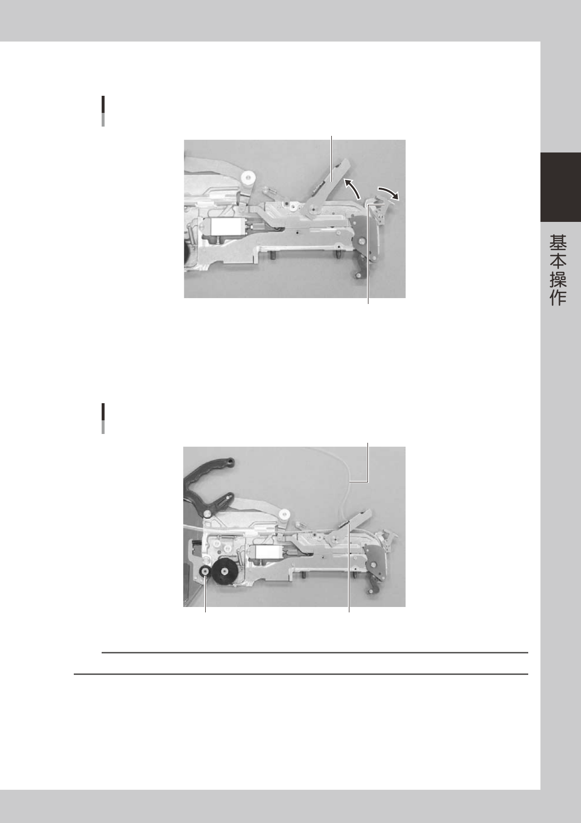 2-28 2 按照料带安装路径图安装料带。 c 注意 穿绕盖带时,在下图 AA 部,必须将接合面 ( 粘贴面 ) 朝向表面。 料带安装路径图 基带 AA 部 盖带 :盖带 ∼ ∼ :基带 E E A A a a c c C B b D D 以 FS2 为例 25209-M7-00 n 要点 FT 的料带安装路径与 FS2 相同。 6 将元件传送至吸附位置。 安装完料带后,按盖带剥离杆的弯折部,将元件传送至吸附位置。