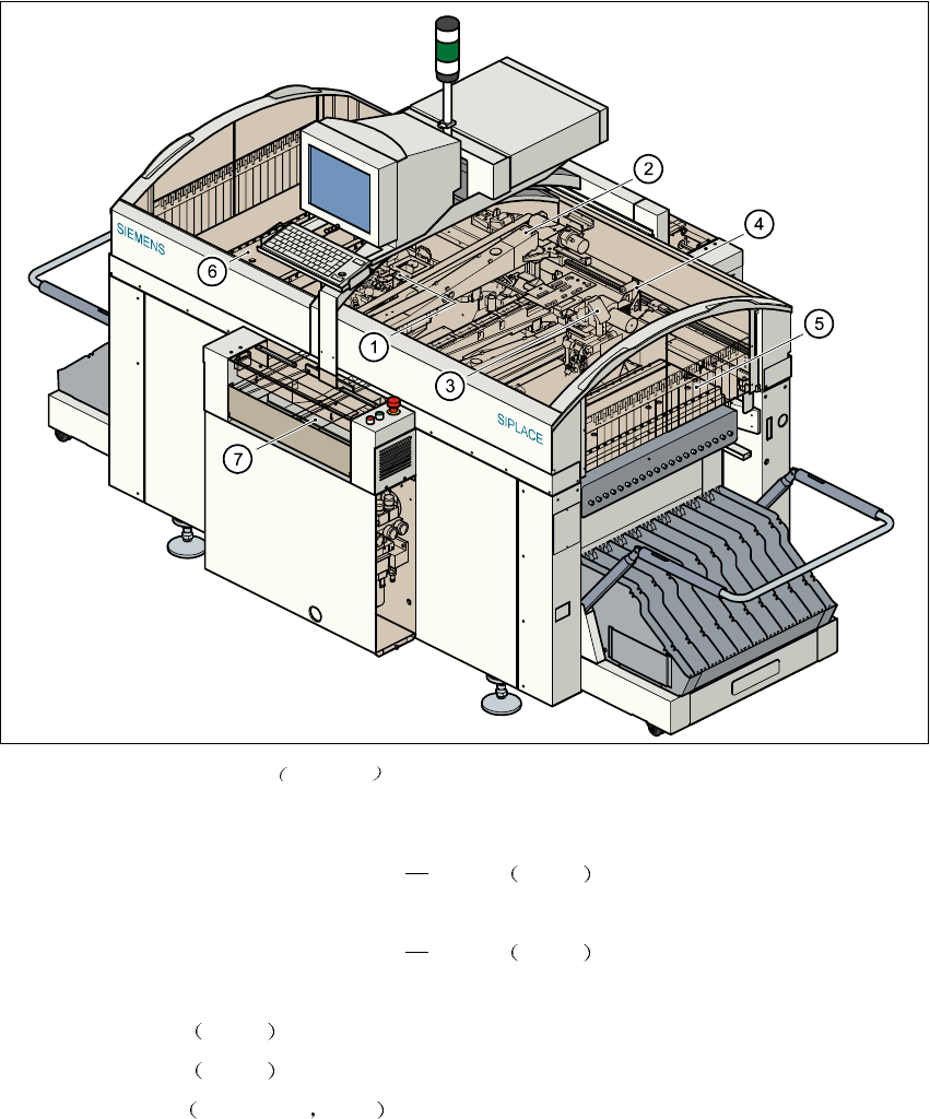 SIPLA CE 软件指南 SR.503.xx 2 前言与基 本词汇 2001 年 12 月版 2.2 概述 17 2 Fig. 2.2 - 2 贴片机元件示 意图 如 S25-HM 图例 图例 图例 图例 2.2 - 2 (1) 装有元件视像组件的 6/12 段位器拾取 贴片头 悬臂 1 (2) 带 PCB 视像组件的 悬臂 1 (3) 装有元件视像组件的 6/12 段位器拾取 贴片头 悬臂 2 (4) 带 PCB 视像组件的悬臂 2…