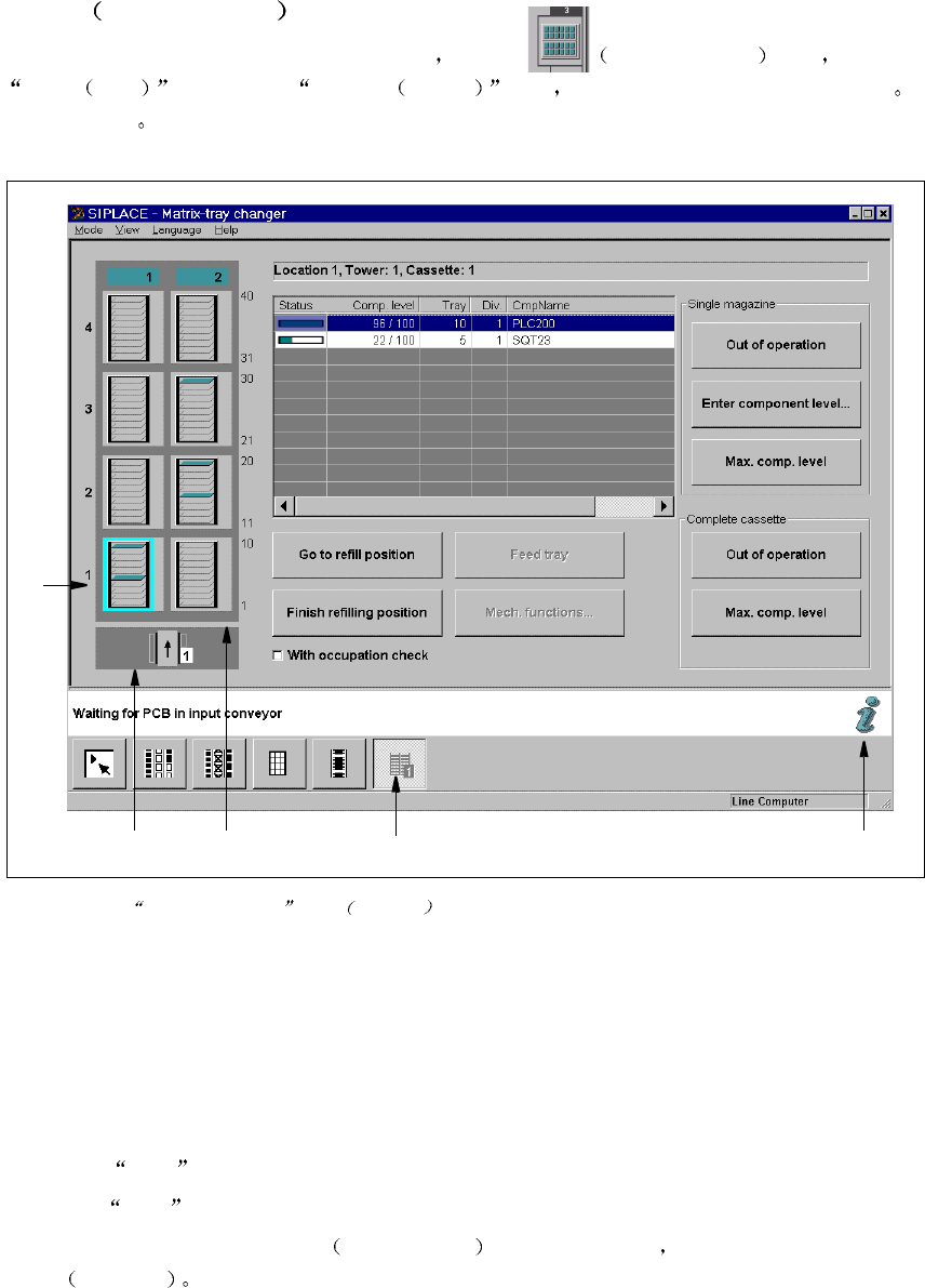 矩阵式料盘交换器的视图 须单击 位置 1 或位置 3 按钮 或从