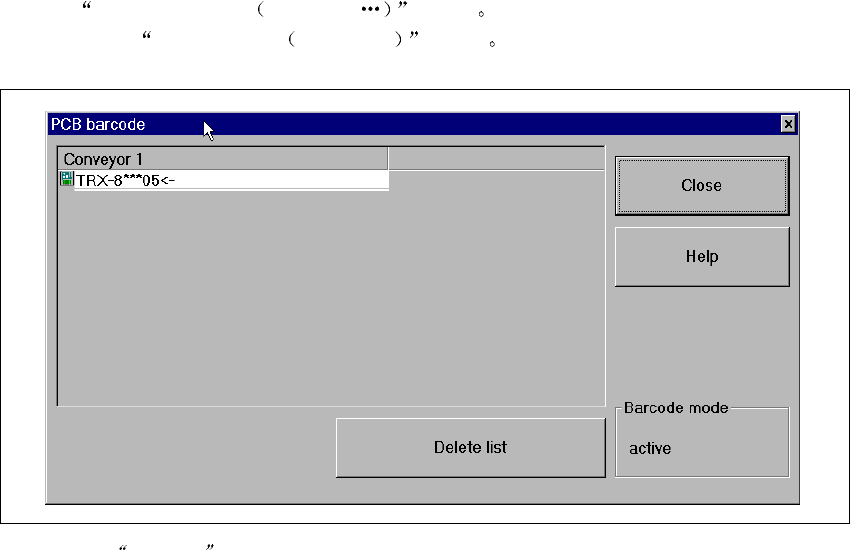 3 图形用户界面 SIPLAC E 软件指南 SR.503.xx 3.3 用户界面 - 视图 与 菜 单 2001 年 12 月版 52 ! 单击 Delete list 删除列表 删除列表 删除列表 删除列表 按 钮 删除列表 中的所有 条 目 ! 单击 Close 关闭 关闭 关闭 关闭 按 钮 关闭 该 对 话框 注意 条 形 码 操作的 当 前 状态 将 显 示在 Dele te list 删除列表 删除列表 删除列表 删除列表…