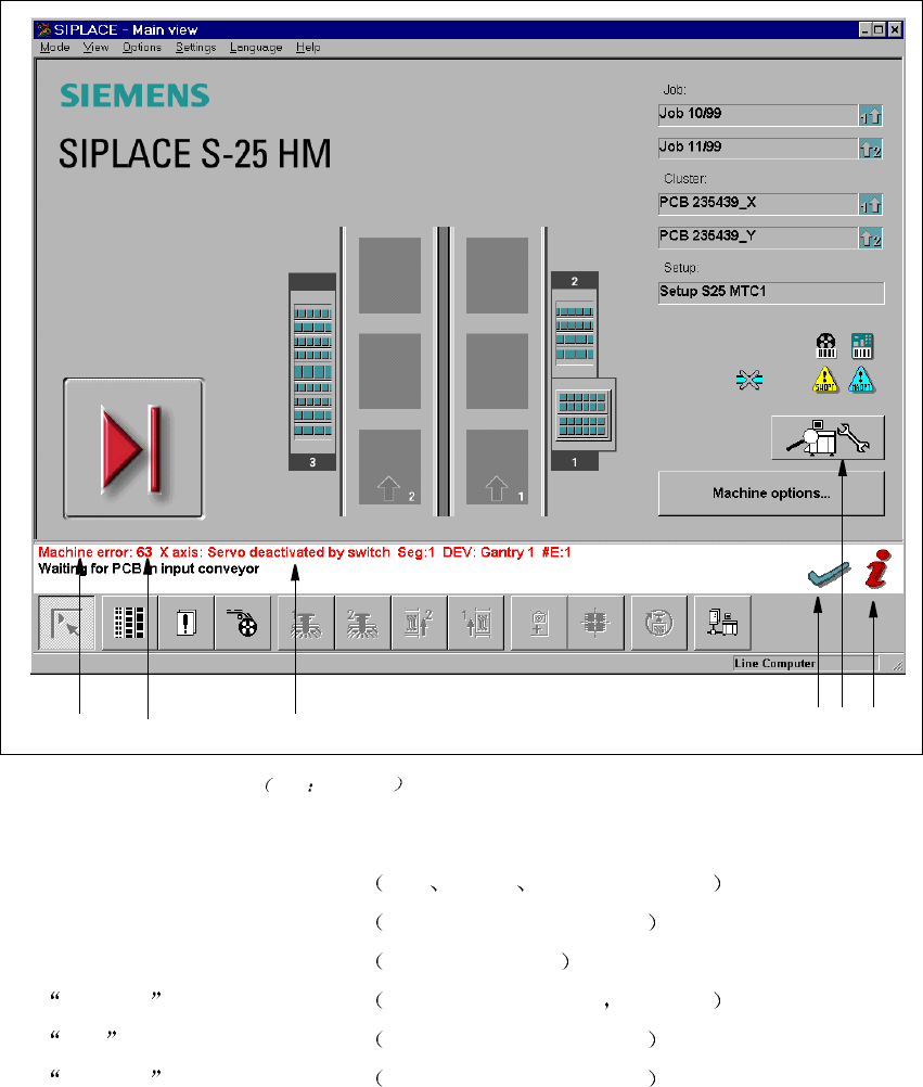 SIPLA CE 软件指南 SR.503.xx 5 错误信息和 TSS 2001 年 12 月版 5.1 总论 67 5 错误信息和 错误信息和 错误信息和 错误信息和 TSS 5.1 总论 总论 总论 总论 如果贴片机操作发生 错误 可以调用有关导致错误 的原因以及如何 消除错误的信 息 5 单击按钮 启动站计算机 帮助系统 帮助系统 帮助系统 帮助系统 (75 页上的联 机帮助系统 ) 5 – 显示的信息始终与 当前屏幕显示的错误 …