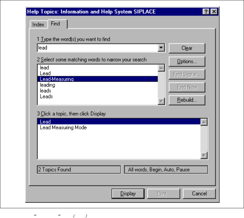 SIPLA CE 软件指南 SR.503.xx 6 联机帮助系统 2001 年 12 月版 6.1 总论 85 6 Fig. 6.1 - 10 帮助主题 窗口 查找 6 6