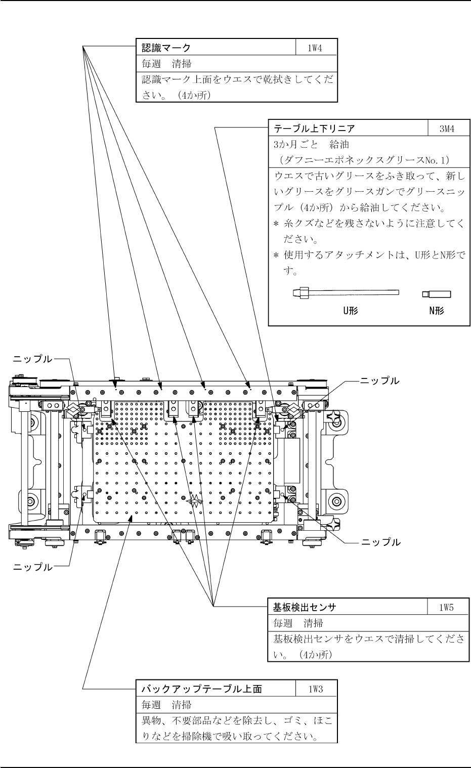 Tg0434-PM-MT 1.3 メンテナンスか所 0203-003 1 - 15 Fig. 4A19 (6) (6) (6) (6) (6) 基板位置決め部 基板位置決め部 基板位置決め部 基板位置決め部 基板位置決め部 ( ( ( ( ( P P P P P コンベア) コンベア) コンベア) コンベア) コンベア)