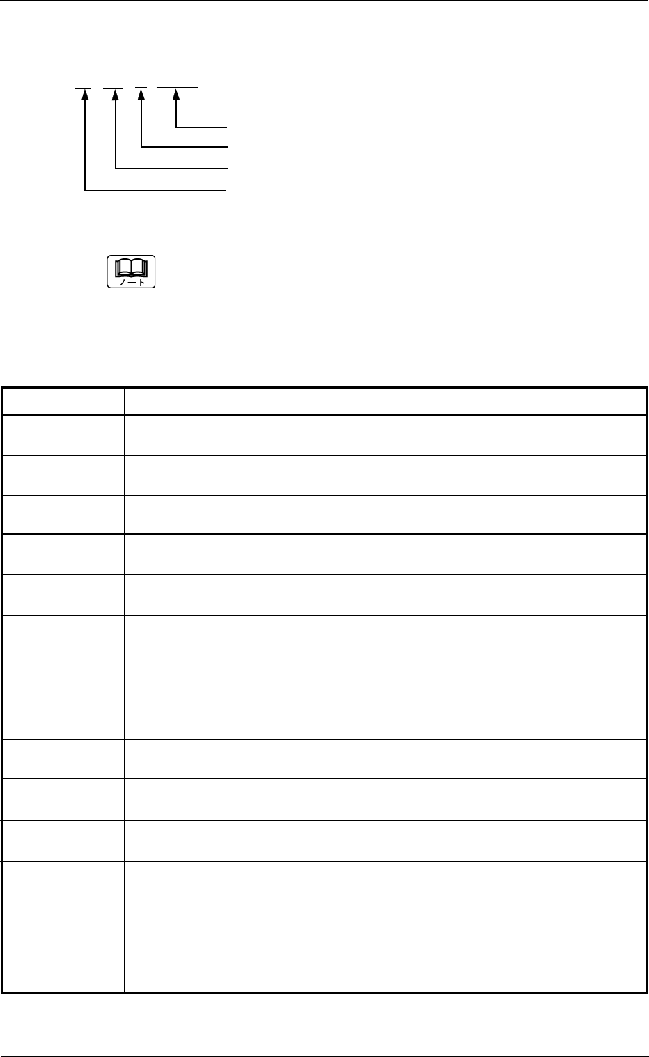 Tg0434-PM-MT 4.3.5 4.3.5 4.3.5 4.3.5 4.3.5 各種教示異常 各種教示異常 各種教示異常 各種教示異常 各種教示異常 AA BB C DDDDD 詳細コード 異常の子分類(0、6 ) 異常の親分類(0 ∼ 99) 認識機能の分類(10 ) (a) 異常 ID の“*”には、詳細コードがはいります。 (b) 記載している異常 ID 以外が発生した場合は、当社サービスへ連 絡してください。 Table …