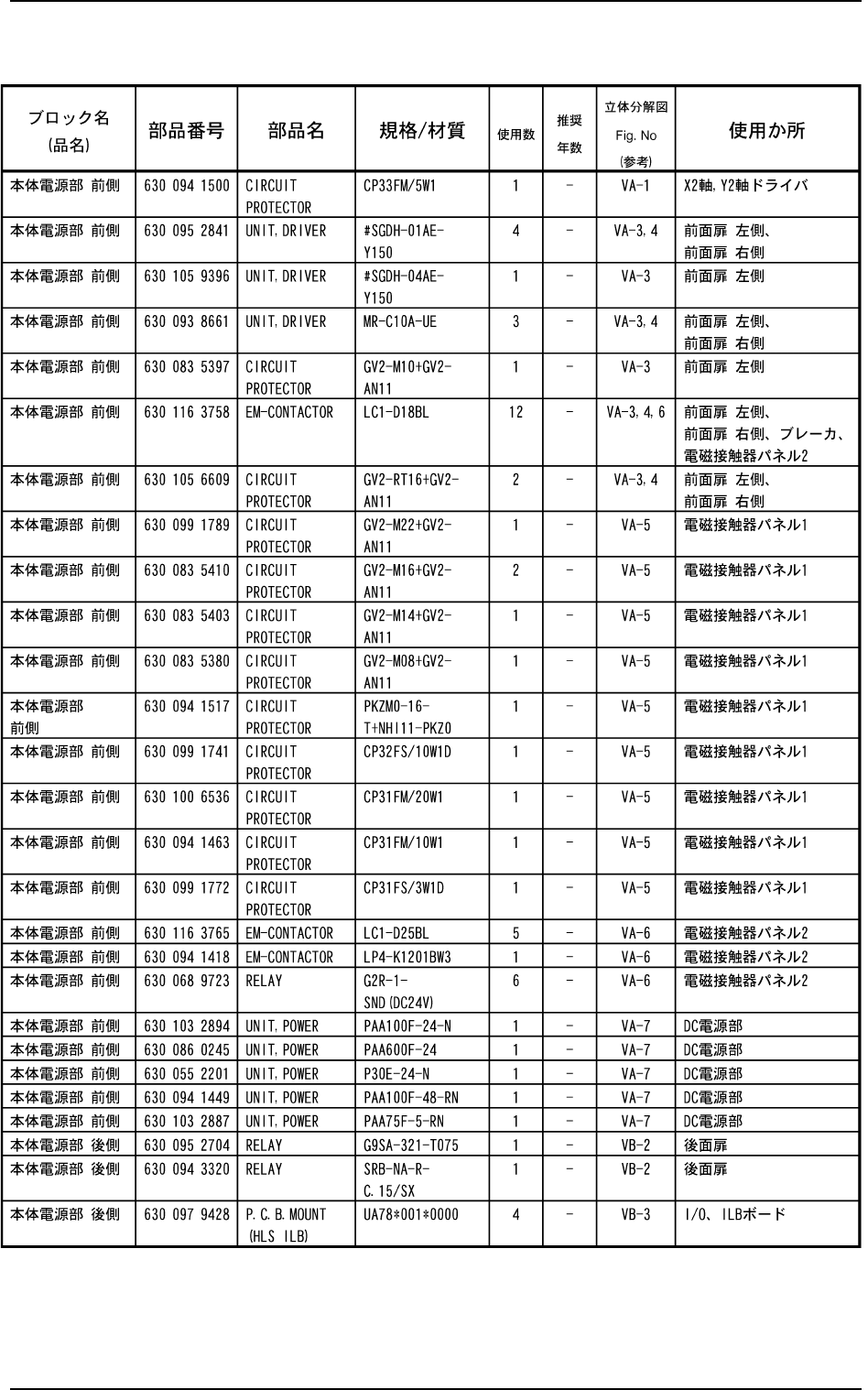 Tg0434-PM-MT 0307-002 1 - 44 2.2 重要保守品リスト Table 4A13-2