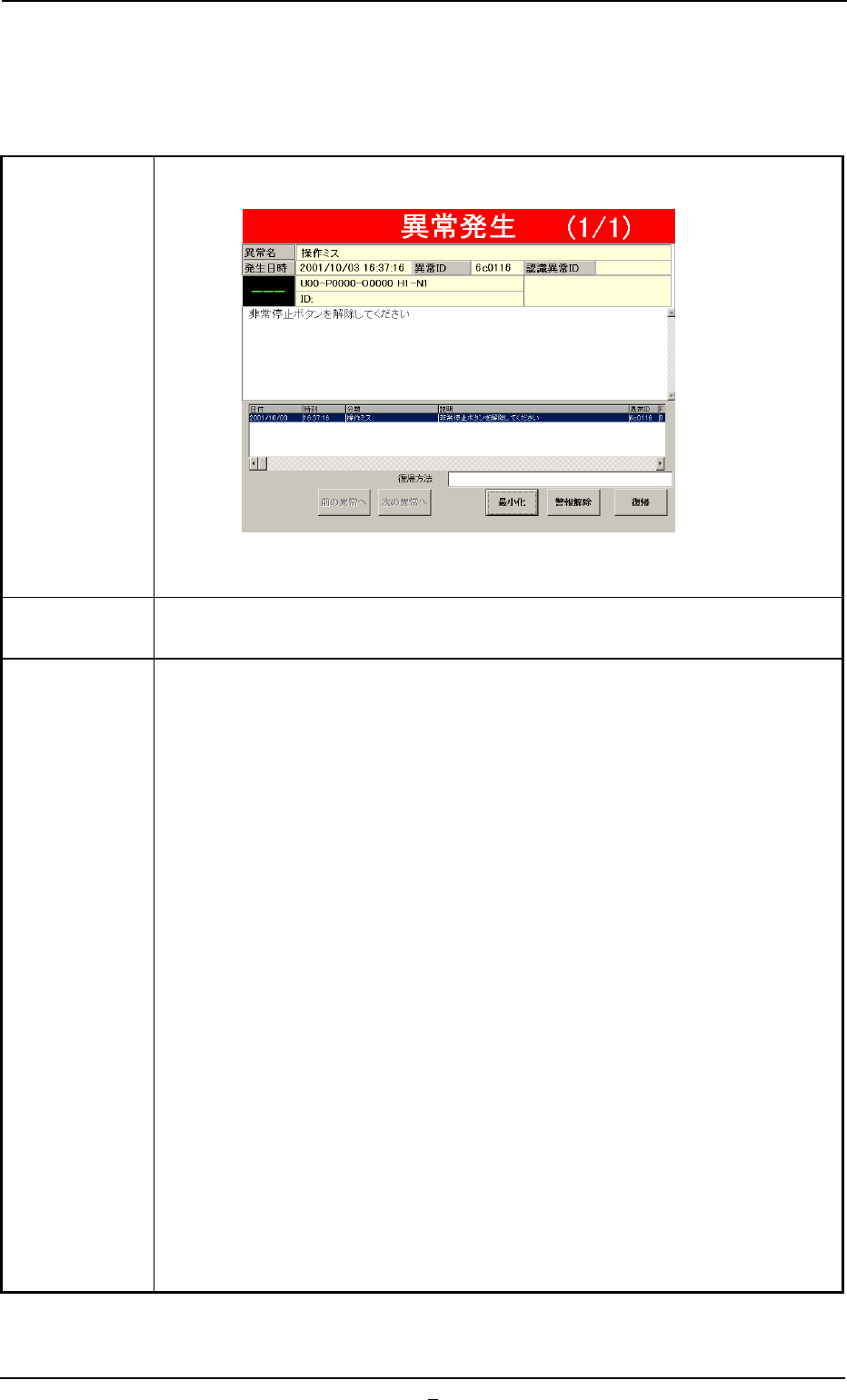 対象外の場合か、異常発生後の復帰手順に誤りがあった場合で