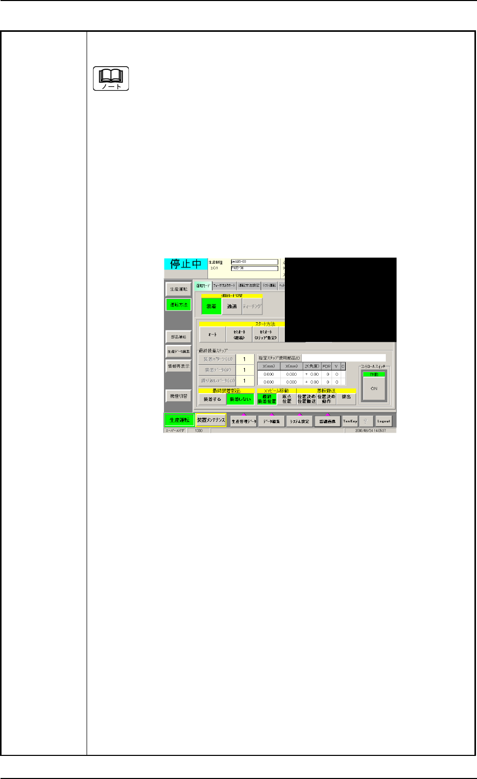 (11)生産運転サブメニューの[運転方法]ボタンを押し、“運転方法”サブメ