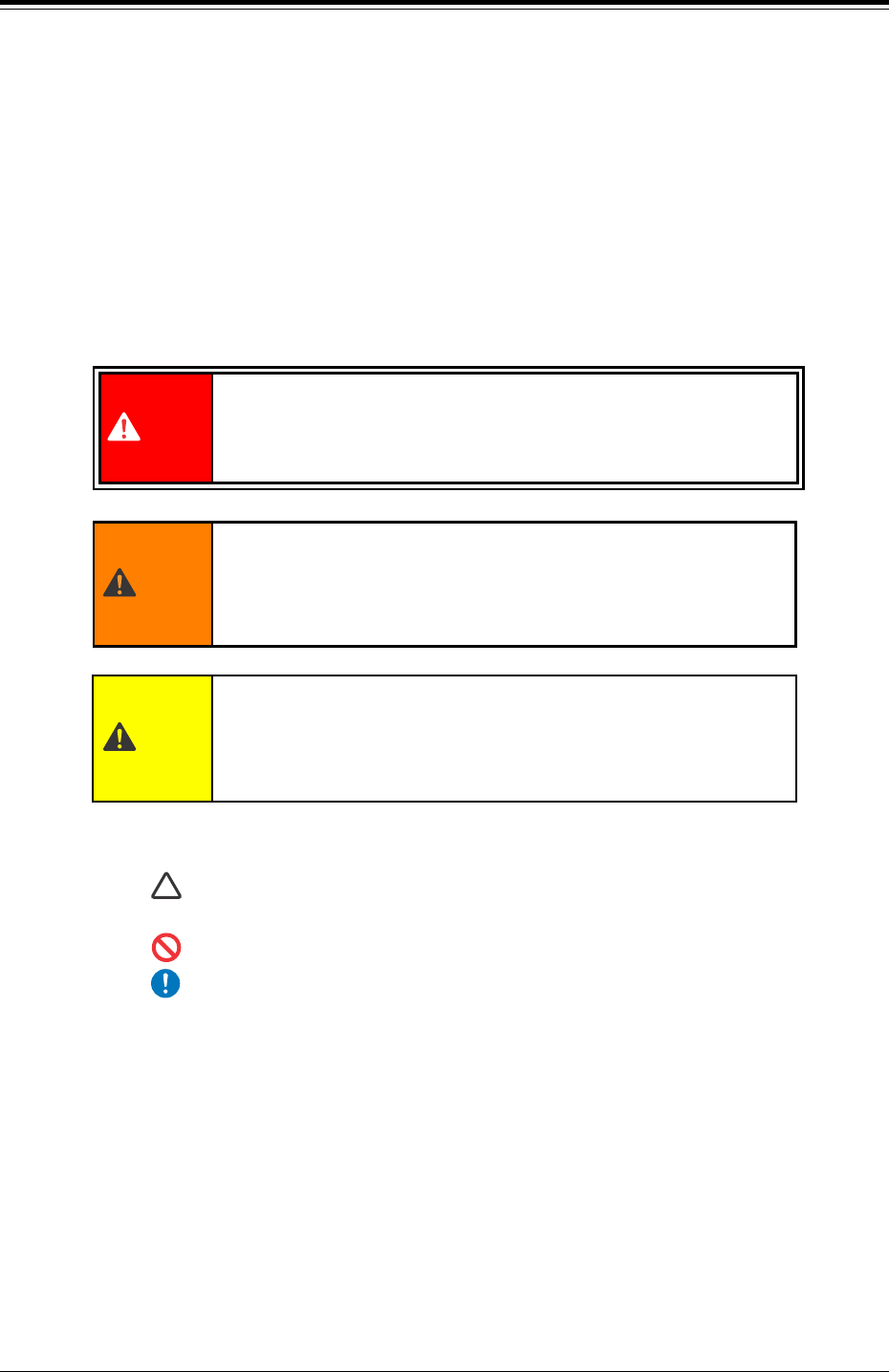 • 警告表示は、危険の度合いにより表示の意味が次の 3 種類に分かれて