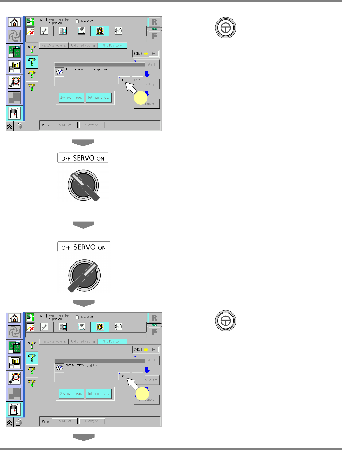 NPM Maint en anc e E di ti on 9.6 Pl ac ement Positi on / Conveyor Page 9-26 EJM9BE-M B-09M-21 32 Press + [OK]. • T he head mov es to the r etracti on positi on. 33 Turn OFF the se rvo switch. 34 Open the s afety cover. …