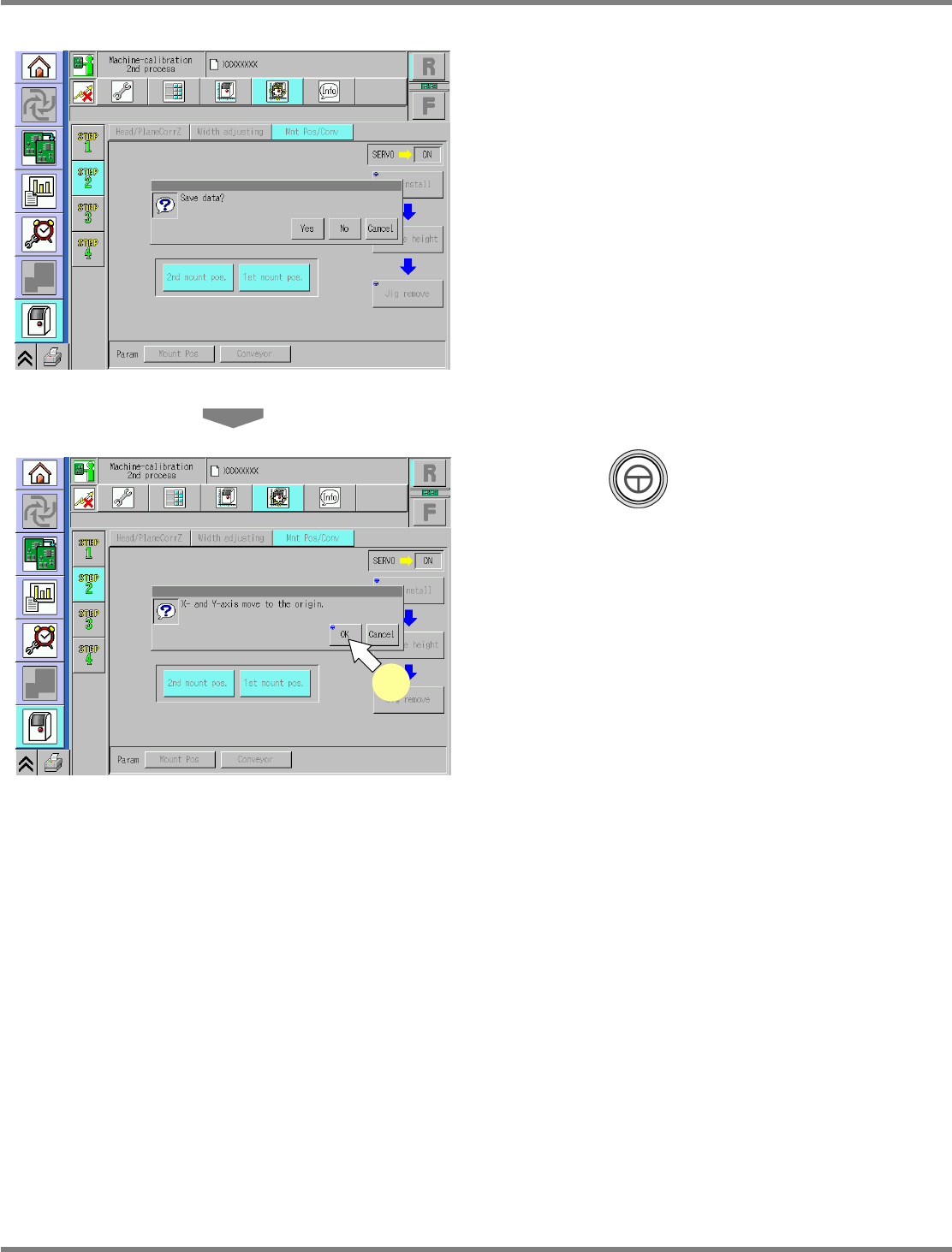 NPM Maint en anc e E di ti on 9.6 Pl ac ement Positi on / Conveyor Page 9-28 EJM9BE-M B-09M-21 46 Save the data . • If you press [No], t he ret urn-to-or i gin process is car ri ed out and the dat a obtained by t he cal …