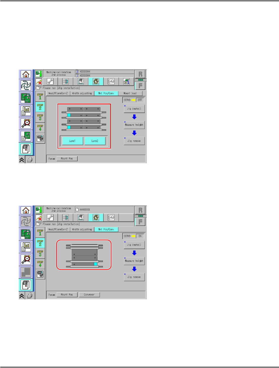 For the dual conveyor type, only the placement height is measured. The operation screen varies