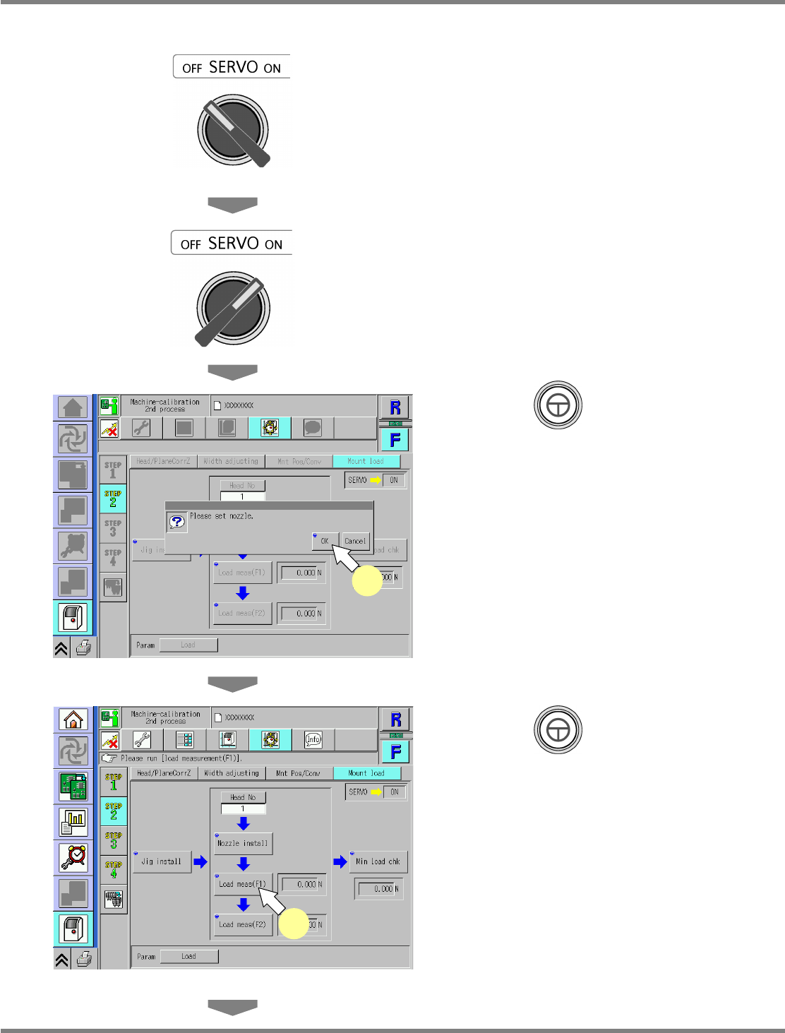 NPM Maint en anc e E di ti on 9.7 Pl ac ement Load EJM9BE-M B-09M-21 Page 9-35 16 Turn OFF the se rvo switch. 17 Open the s afety cover. 18 Attach the nozz le. ∗ Att ach the nozzl e to the t arget nozzl e positi on f or …