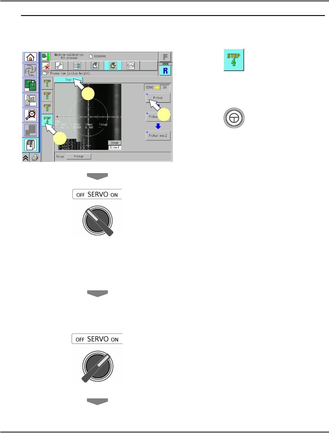The following is the calibration procedure for the machine equipped with the tray feeder.