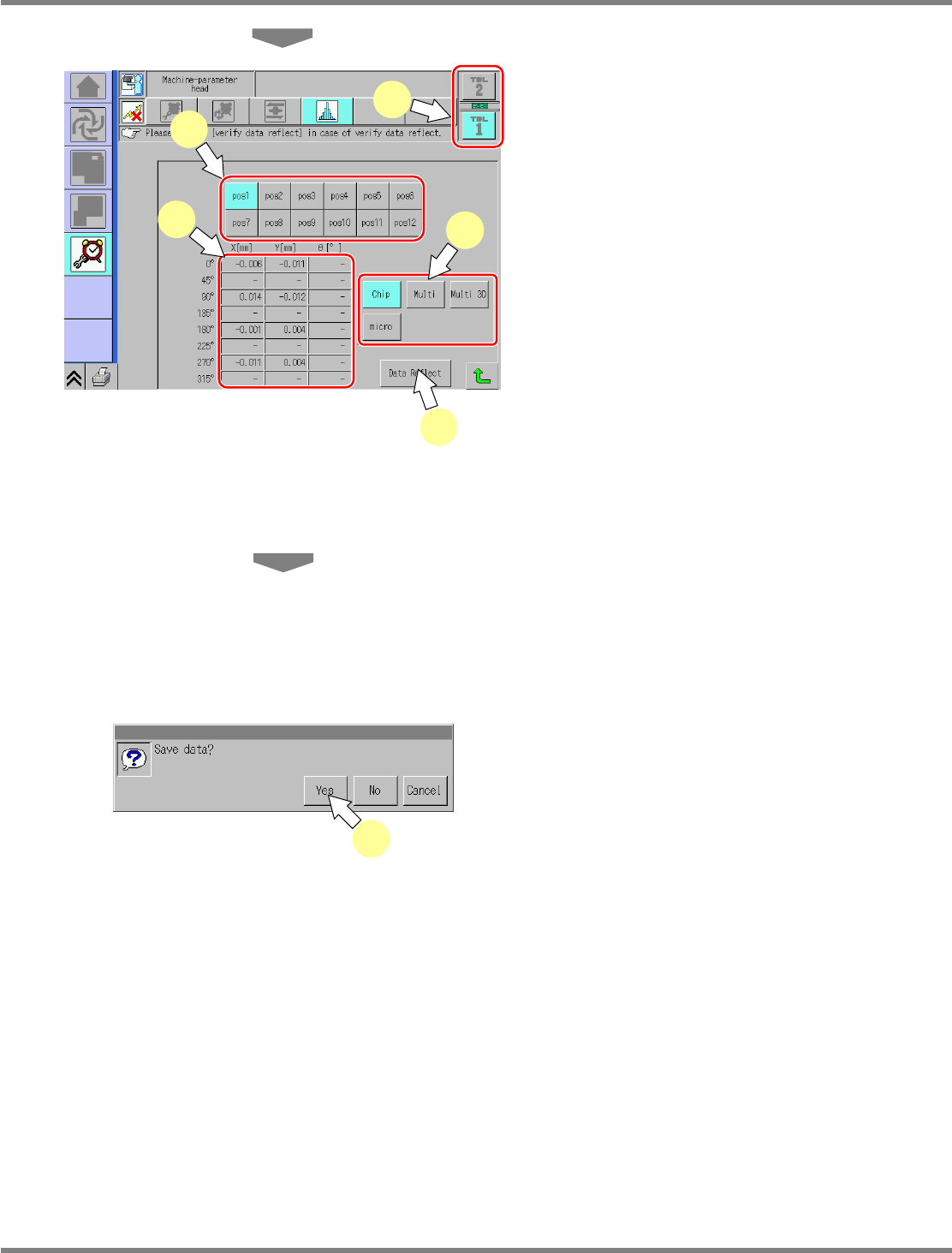 Pressing [Yes] reflects the data and updates