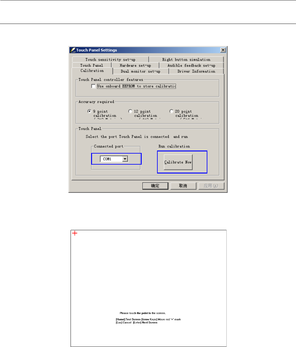 3) 将触摸屏所 Connected port 为“COM2”,点击“Calibrate Now”。