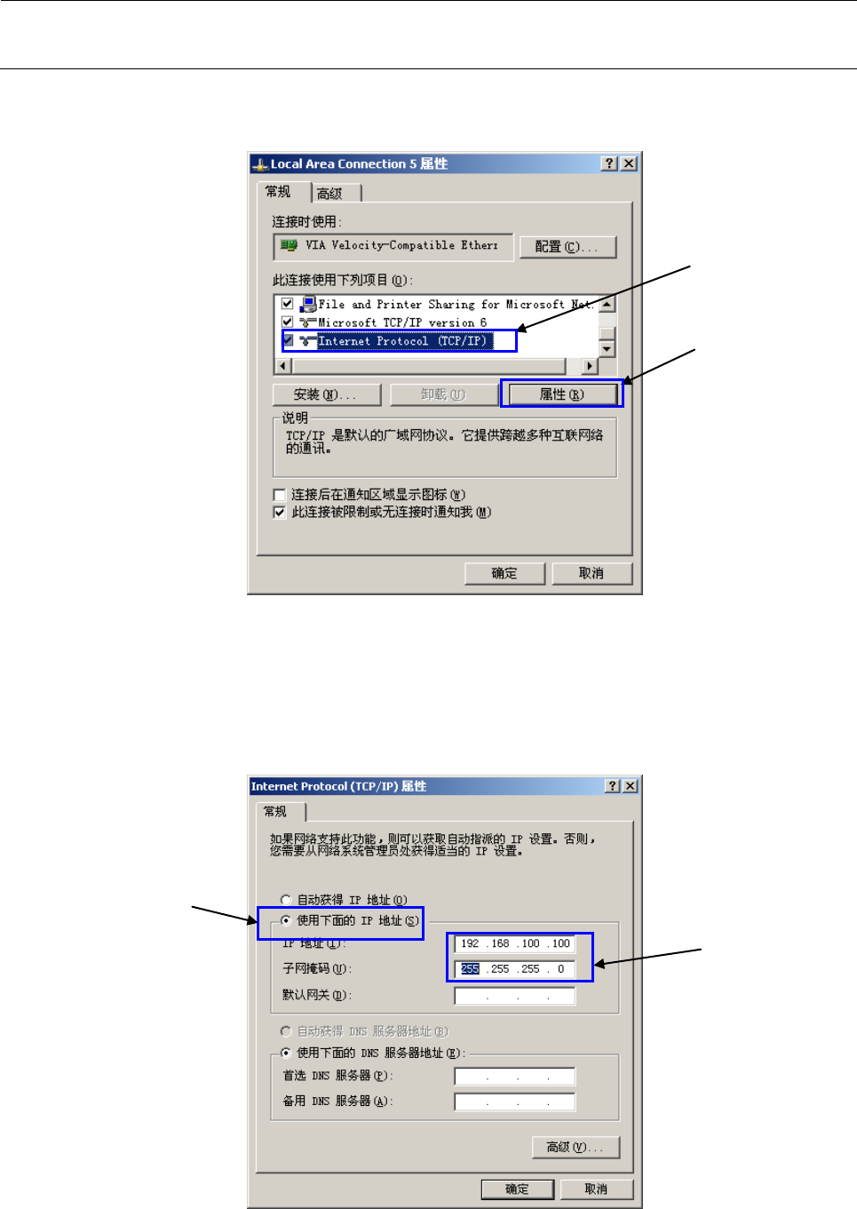 在这一画面中,请选择①“使用下面的 IP 地址(S)”,并指定②[IP 地址]、[子网掩码]。