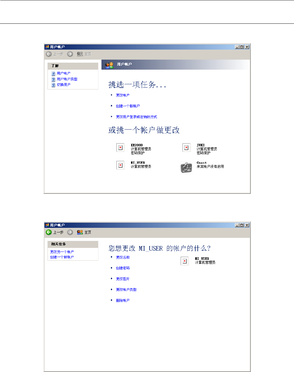 维修调整要领书 12-23 4) 选择后,显示出设置账户名的画面,请输入用户账号名,选择「下一步」。 5) 选择 后,就会 显 示 设 置 账 号种 类 的画面, 请选择 ① [ 计算机管理员 ] ,按下②「 创建 账户 」按 钮 。 ① ②