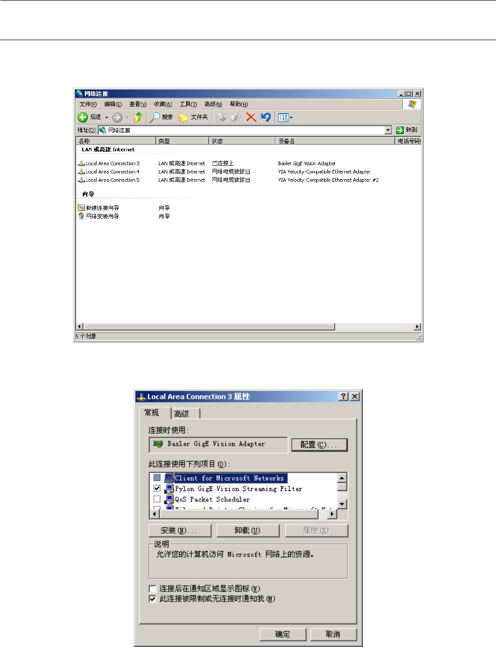 除[Pylon GigE Vision Streaming Filter]与 [Internet Protocol(TCP/IP)]以外,取消所有的勾选。