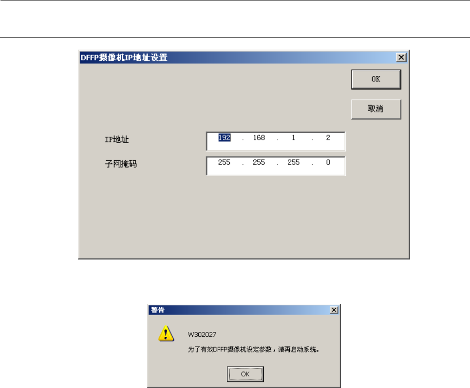 3) 设置 DFFP 摄像机的网络。无特别指定时,请按如下进行设置。