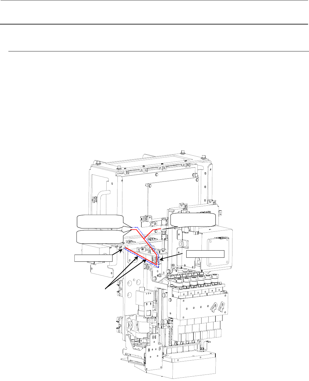 3) 1394 机器人电缆线按图示的路线配置,穿过贴装头右侧与来自 LNC 的连接器中继连接。(参照
