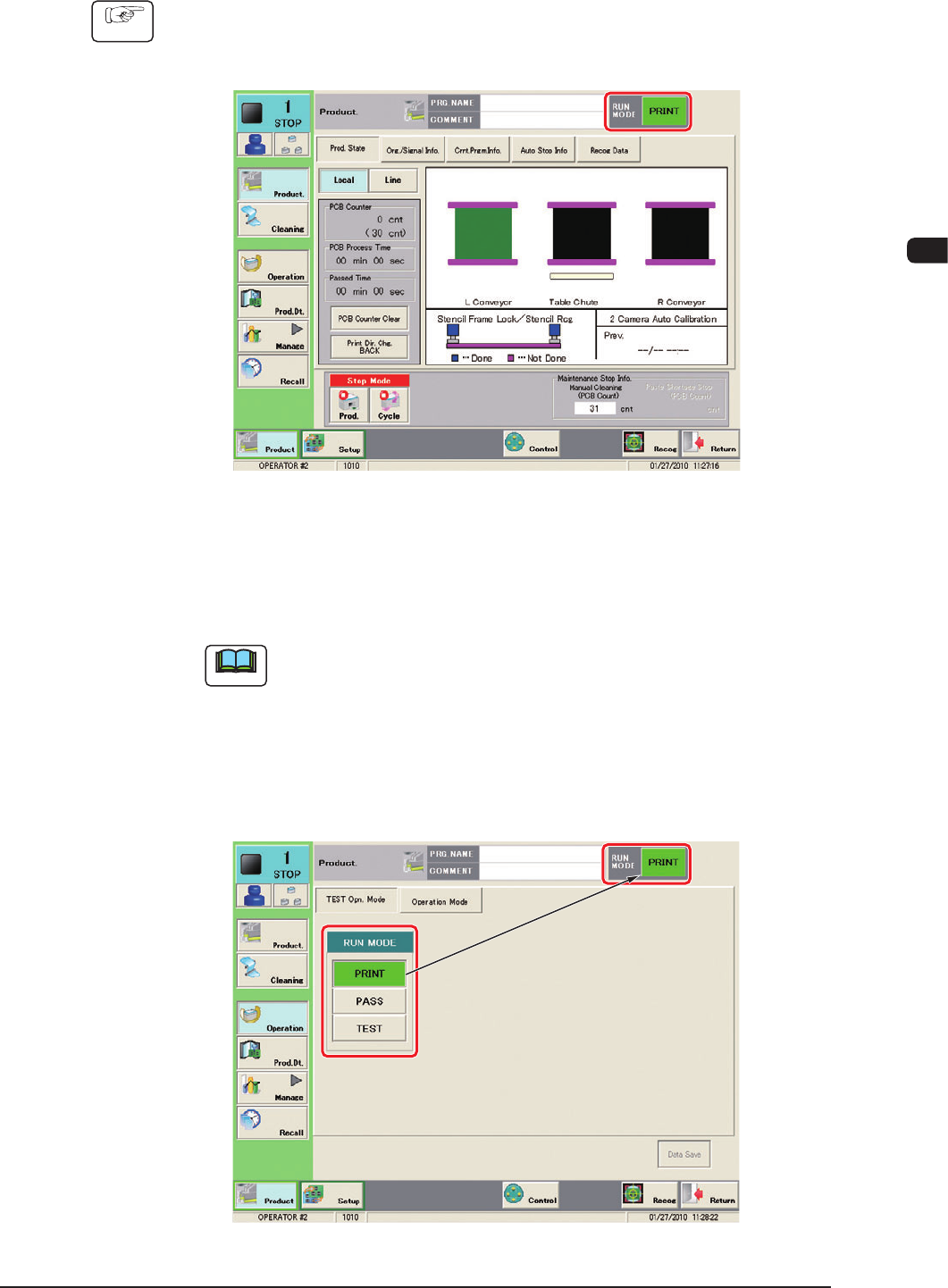 Pressing the [Run Mode] button can also display the "TEST Opn Mode"