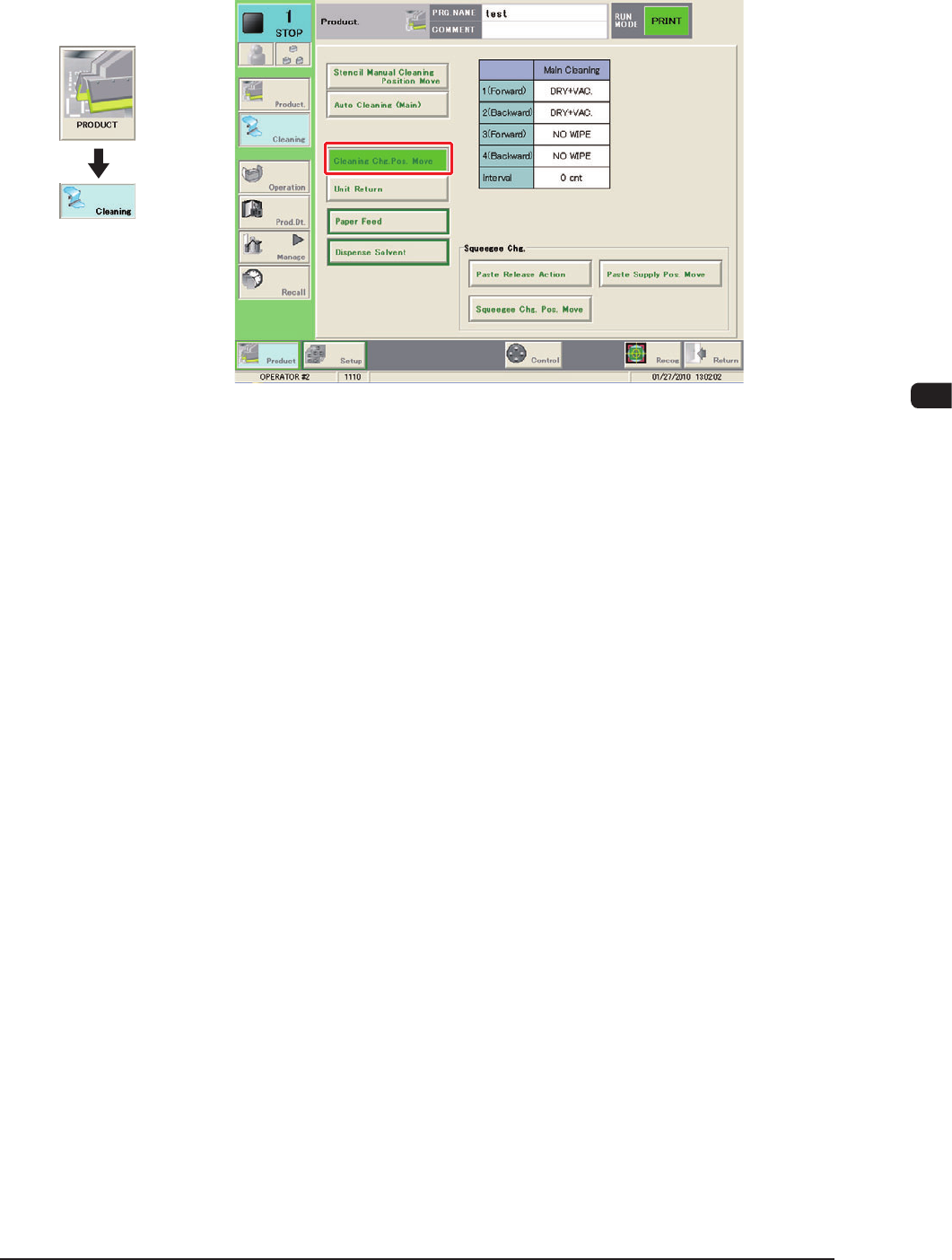 (9) Press the [Cleaning Chg. Pos. Move] button in the "CLEANING" window