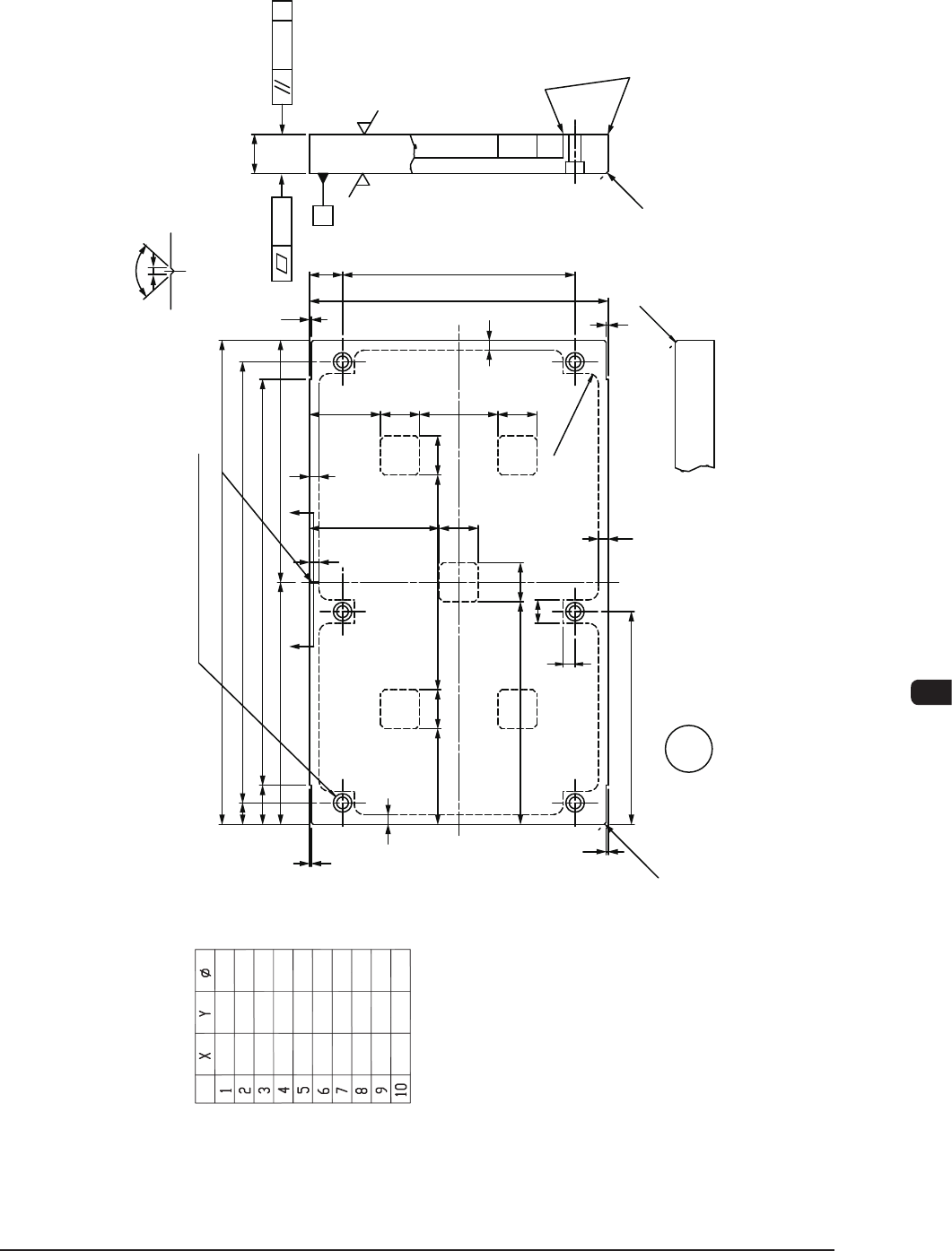 1OM-1505 6. PCB V acuum Jig (PCB Width W "250<=W<=460") : Chap.6 6-19 6.3 V ariant Drawing for the Component Section (P/N 1 1-1). b b 0.03 A A 0.03 4-C1 Fine Chamfering (Fringe) 2-C1 2-C1 Q- F 6 F 9.5 Cou…