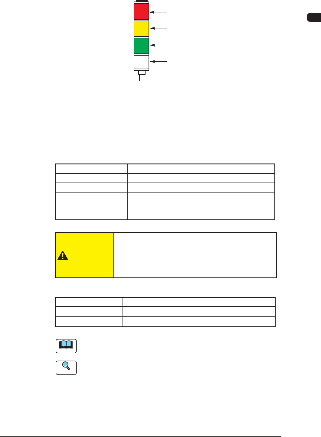 The light tower indicates the status of the machine with the lamps and buzzer