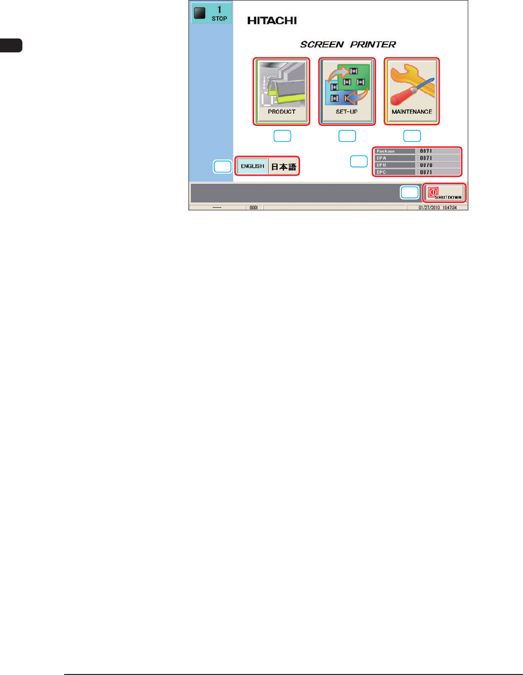 1OM-1505 2-2 1. Startup : Chap.2 1002-002 1.1 "T op" Window When the self-diagnosis is completed, the [Power ON] button turns yellowish green and the following window appears on the touch screen. [1] [2] [3] [4…