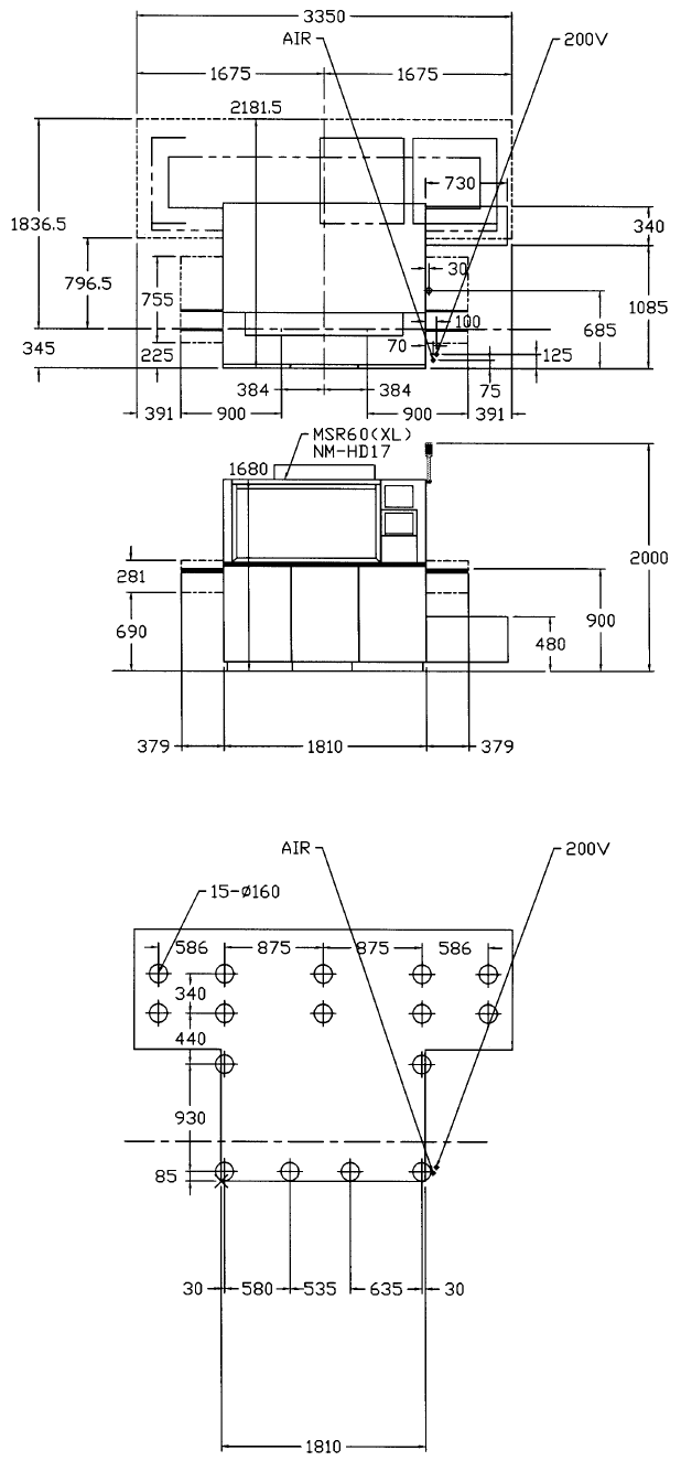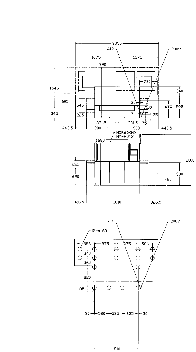 - 34 - MSR 2001.4.1 12.1 MSR 60 (M) (1) 平面尺寸以及空气压、电源输入位置 (2) 调整螺栓配置图 12 . 尺寸图 尺寸图 尺寸图 尺寸图