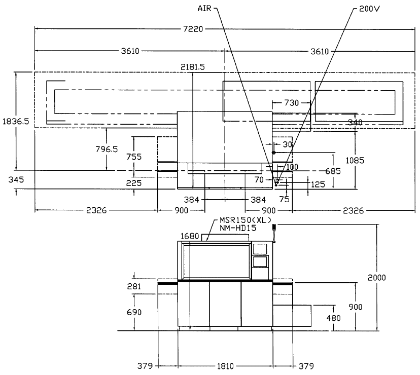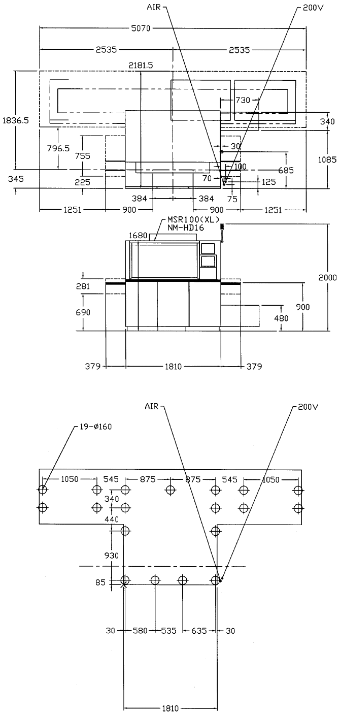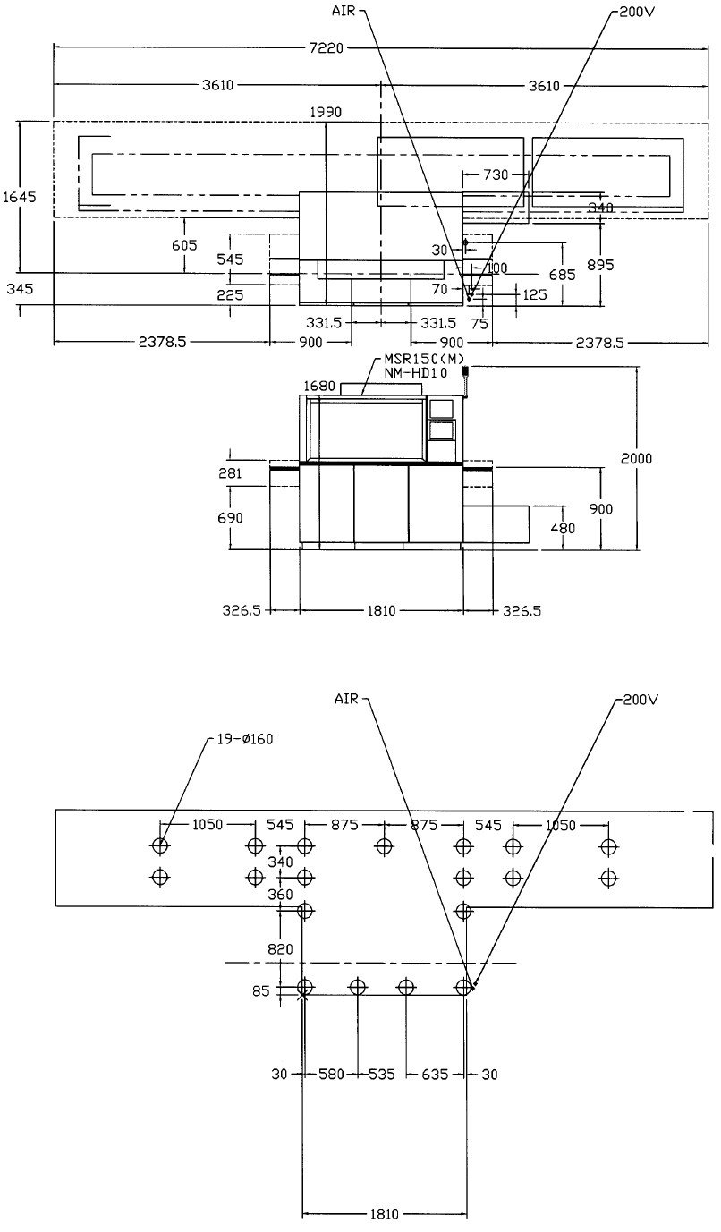- 38 - MSR 2001.4.1 12.5 MSR 150 (M) (1) 平面尺寸以及空压、电源输入位置 (2) 调整螺栓配置图