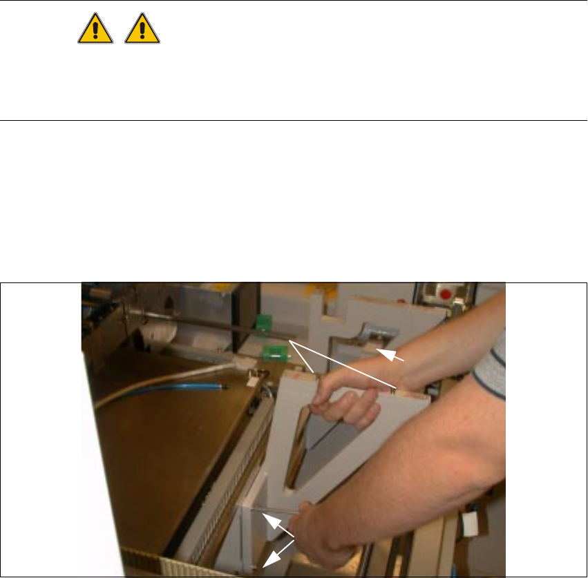 1 Nachrüstanleitung: Matrix Tray C hanger MTC an S-25 HM ( Option) SIPLACE 80 S -25 HM 1.7 Einbau des Nachrüstsatzes Ausgabe 01/01 24 Halten Sie d ie Aufnahme an den Masch inenstän der (die rechte Lasch e liegt auf dem S…