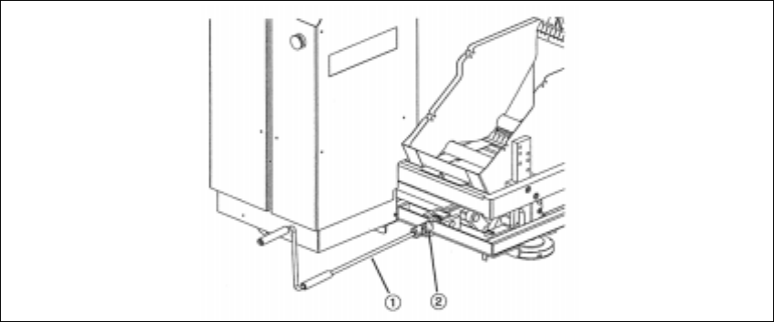 SIPLACE 80 S-25 HM 1 Nachrüstanleitung: Matrix Tray Changer MTC an S-25 HM (Option) Ausgabe 01/01 1.8 Installation des MTC 37 Abb. 1.8.1 MTC mit Handkurbel anheben Legende: 1. Handkur bel 2. Kupplung für Handk urbel Å S …