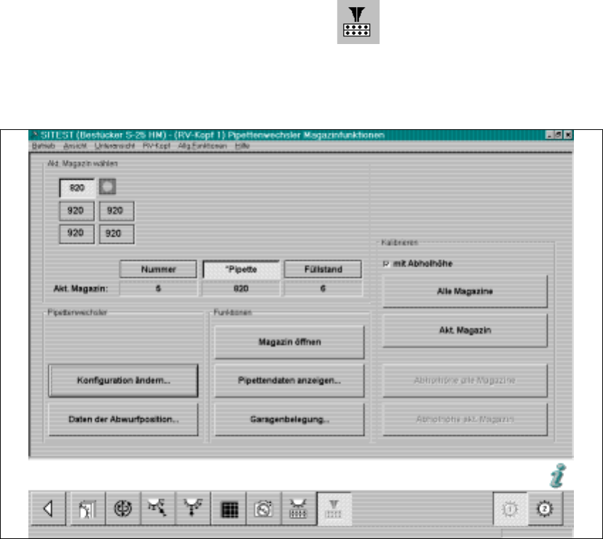 Abb. 1.8.8 SITEST: Pipettenwechsler-Konfiguration ändern (Beispiel: RV6)