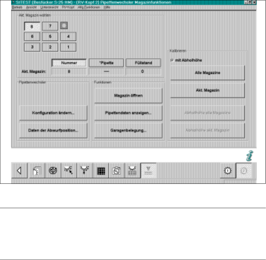 Abb. 1.8.10 SITEST: Pipettenwechsler-Magazinfunktionen (Beispiel RV12)