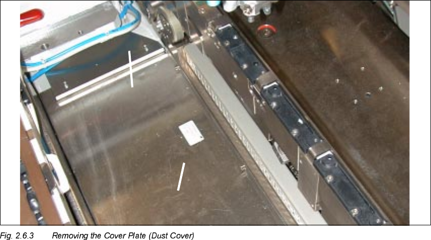 Å Dismantle the cover plate (dust cover) in the area between the PCB conveyor and the compo-