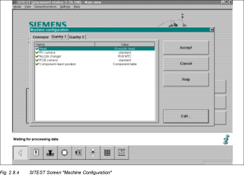 head module is configured at the selected gantry) -> "Accept" (button).