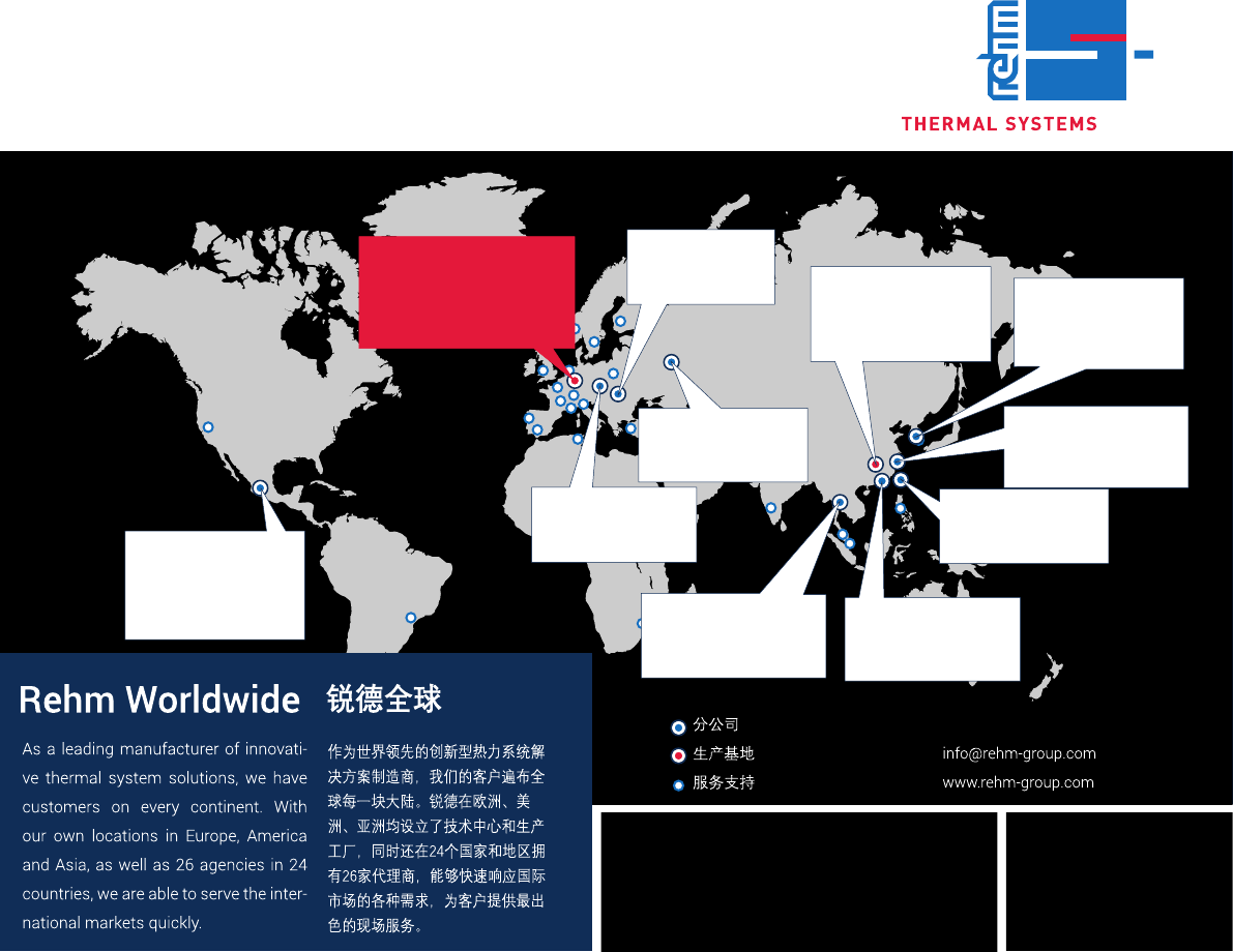 Rehm Thermal Solutions T echnology Center Guadalajara, Mexico 锐德热力方案 技术中心 瓜达拉哈拉,墨西哥 Rehm Ceská republika Pr Í bor , Czech Republic 锐德捷克共和国分部 捷克共和国 Rehm Thermal Systems Production Dongguan 锐德热力设备(东莞)有限公司 东莞,亚太区生产基地 Rehm T…